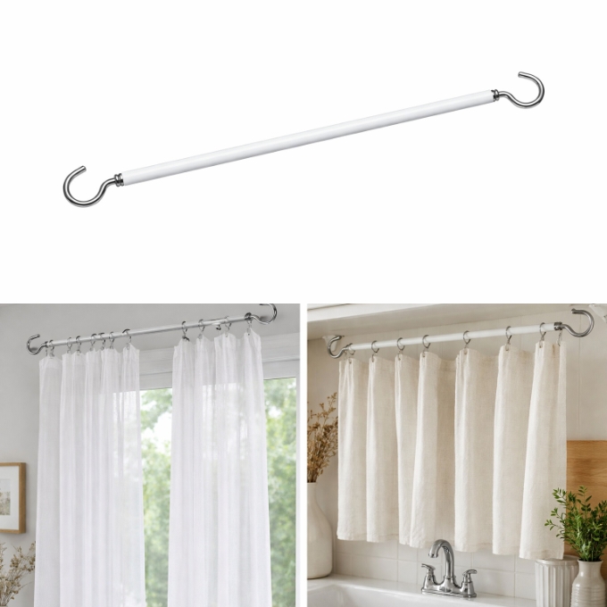 Curtain Wire With Hooks is a curtain hanging system consisting of a durable wire, which serves as the track for the curtains, and a set of hooks that attach to the wire and hold the curtain in place.