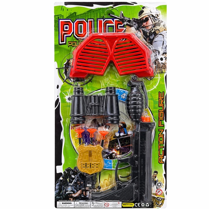 Transform playtime into an action-packed crime-solving mission! This police set features a variety of essential law enforcement tools crafted from durable, non-toxic plastic. The centerpiece is a lightweight toy handgun designed to fire suction cup darts, allowing for safe and interactive target practice.