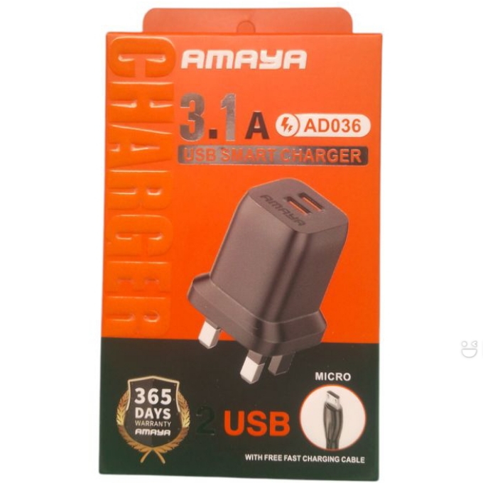 Power up your devices quickly and safely with the AMAYA AD036 USB Smart Charger. Engineered for modern mobile users, this charging block provides a powerful 3.1A output, allowing you to charge smartphones and tablets significantly faster than standard adapters.