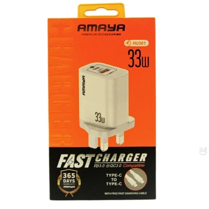 Amaya ACW-HU301 UK A+C 33W charger with Type-C cable