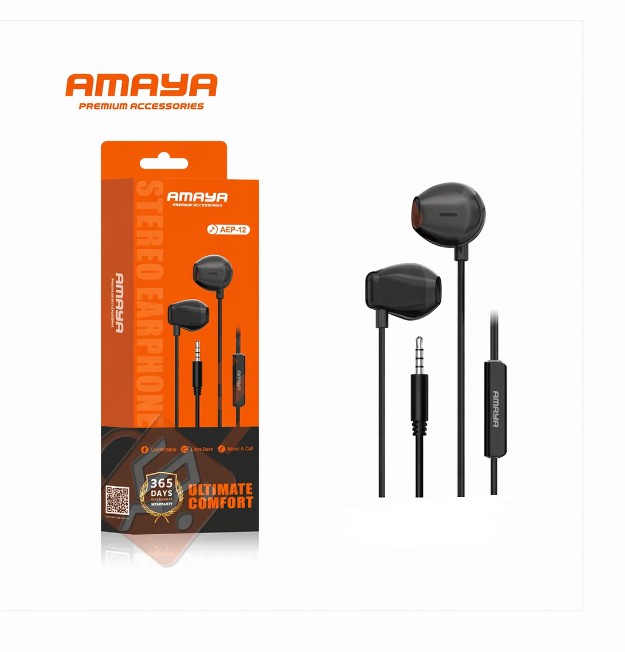 Equipped with a built-in microphone and in-line controls, the Amaya AEP-11 allows for easy call handling and music management without needing to access your device. The durable, tangle-resistant cable ensures long-lasting performance, while the lightweight design makes them convenient to carry and use on the go.