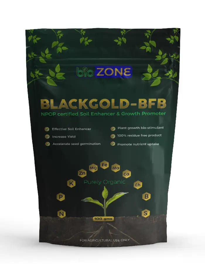 Bio Zone Blackgold-BFB is a high-quality, organic biofertilizer formulated through the natural microbial decomposition of organic matter. Enriched with humic acid, fulvic acid, auxins, vitamins, and essential macro- and micronutrients, it acts as a powerful soil conditioner and plant growth stimulant.