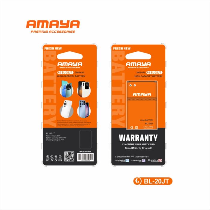 The BL-20JT is a rechargeable replacement smartphone battery commonly used in Tecno F1 and other compatible devices. It is designed to restore phone performance by providing stable power supply, especially for older or worn-out batteries.