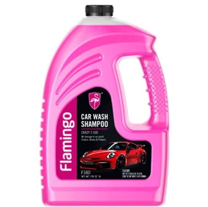 Flamingo F380 Car Wash Shampoo 5L is a premium automotive cleaning solution formulated to deliver effective cleaning while being gentle on your vehicle’s paint and finishes. Its neutral pH polymer‑based formula deeply cleans dirt, grime, and road film without causing damage to paintwork or protective coatings. With regular use, it also helps enhance surface gloss through mild waxing and polishing action. The shampoo’s environmentally friendly composition breaks down safely in water and is suitable for both hand wash and machine wash applications.