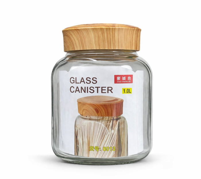 - Stylish glass canister with a natural wood lid for a modern, elegant look