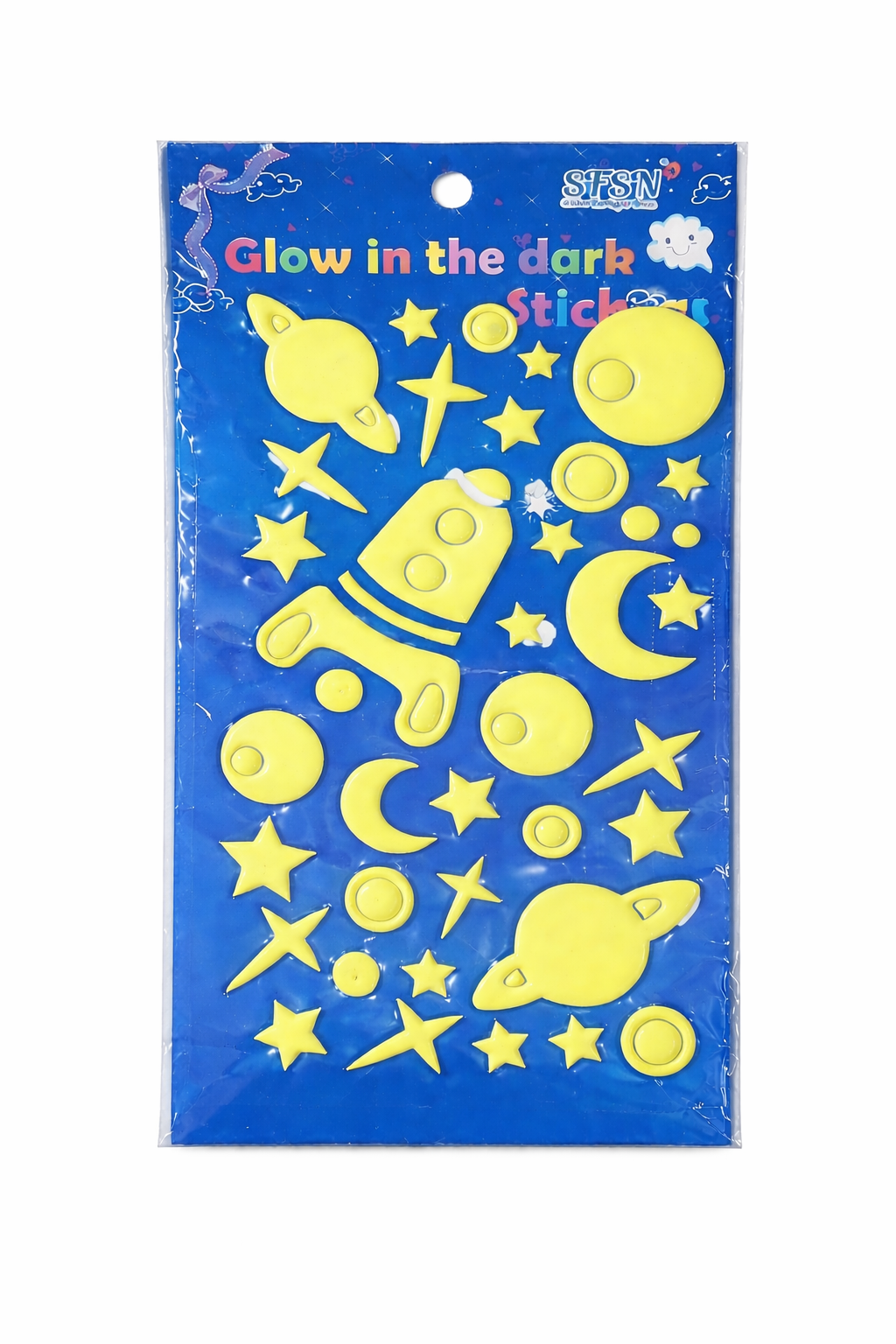 Glow In The Dark Stickers are fun and decorative stickers designed to absorb light and glow beautifully in the dark. Made from high-quality phosphorescent material, these stickers charge quickly under natural or artificial light and provide a soft glowing effect at night. They are perfect for decorating bedrooms, ceilings, walls, laptops, notebooks, and other smooth surfaces.