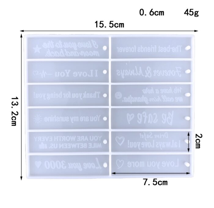 Keychain molds – XCMK810 21 with key rings Chain has a unique keychain, show off your amazing artistic talent! It will look eye-catching anywhere for sure. High-quality materials- keychain mold are made of high quality silicone, more flexible,durable and reusable, and they have smooth and shiny surface, very easy to clean. After pressing and deforming, just rest for a while and then will return to the original state. Easy Instructions and Clean – First pour the resin into the mould; Then patiently wait for the resin to solidify; Finally, easily remove your finished product;Resin keychain molds are very easy to demold when you finished your crafts. In the making process you can add beads, sequins, dried flowers, pictures or any color you like to DIY beautiful crafts and full of creative.