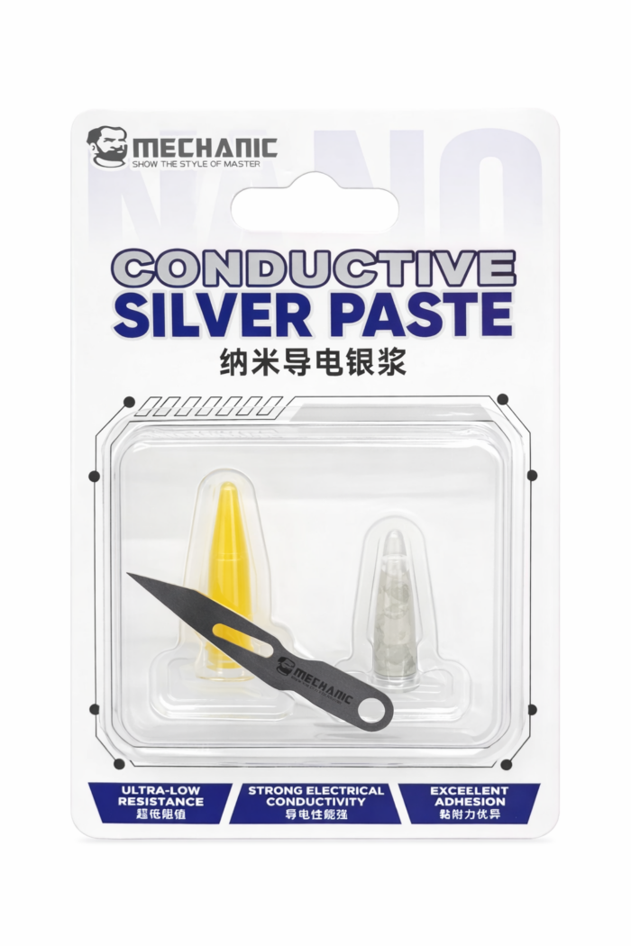 The MECHANIC Nano Conductive Silver Paste is a high-performance electrical repair solution designed for restoring circuit connections, repairing PCB traces, and improving electrical conductivity. Formulated with nano-scale silver particles, this paste delivers ultra-low resistance, strong adhesion, and reliable conductivity for precision electronic repairs.