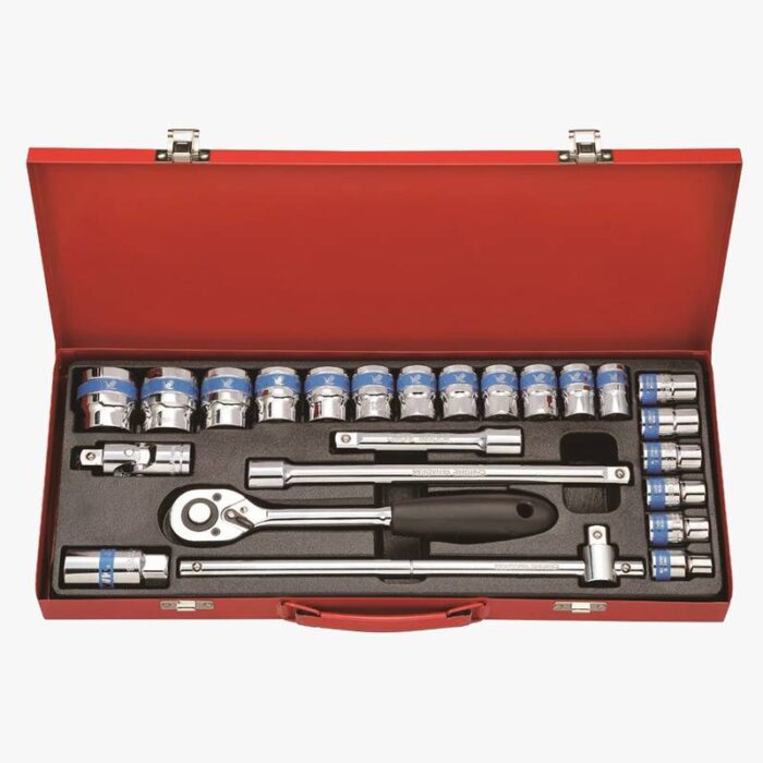- ✅ Complete 24 Piece Set – Includes multiple socket sizes, ratchet handle, extension bars, and essential accessories for various repair tasks.