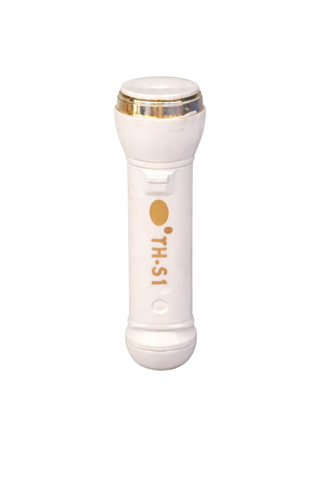 Perfect for everyday lighting needs, the Sleek White Flashlight With Gold Accents is a practical and stylish addition to any home.