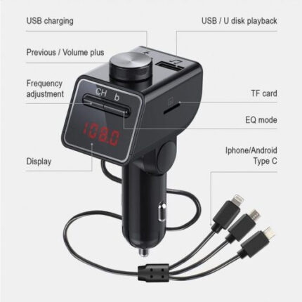 ā¢Bluetooth 5.0 high-speed connection, transfer audio and high-quality music from the mobile phone to the car stereo through FM.