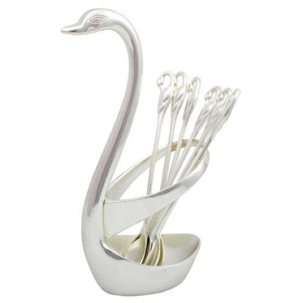 Set Includes 6 spoons and swan base stainless steel utensil holder